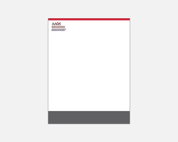 The graphic layout and production specifications for these elements is managed by the Marketing and Communications Department’s branding team. The production is managed by the Integrated Operations Department and printed by a third-party company. The official AAOS letterhead is not to be created, personalized or adapted for individual use outside of AAOS staff and approved members.
