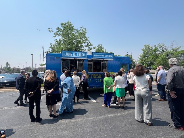 Enjoying the weather and a delicious food truck lunch when the AAOS Board of Directors visits Rosemont.