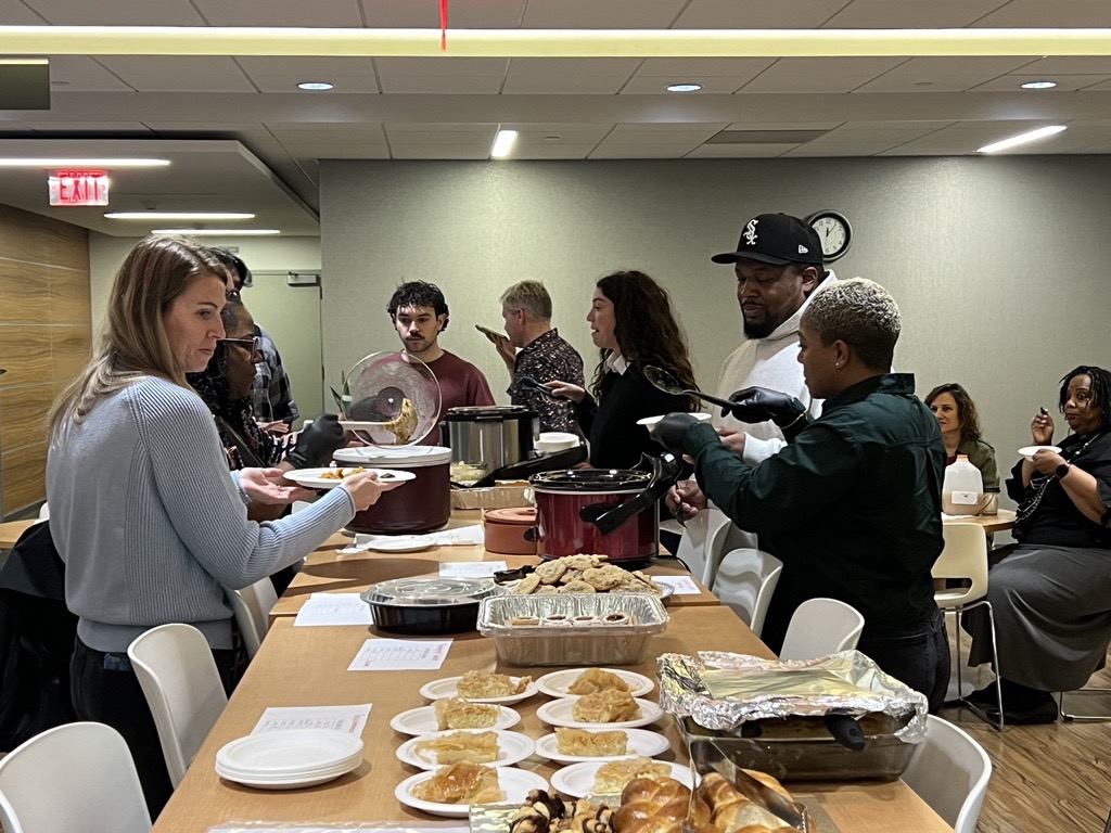 Staff gathered to enjoy the "Foods of our Families" at the annual Foodganza potuck event put on by the Diversity, Equity and Inclusion Employee Resource Group.