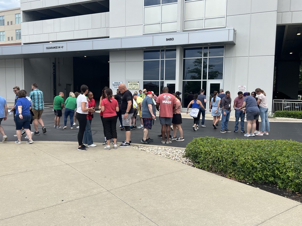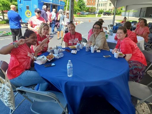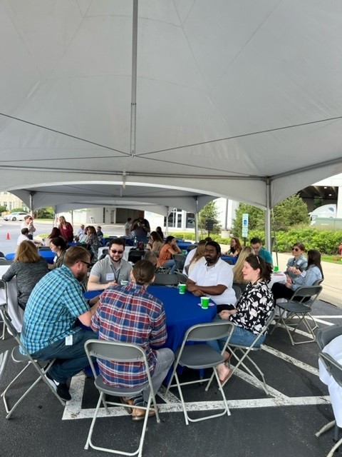 AAOS staff enjoying each other's company during a Food Truck lunch in the parking lot.