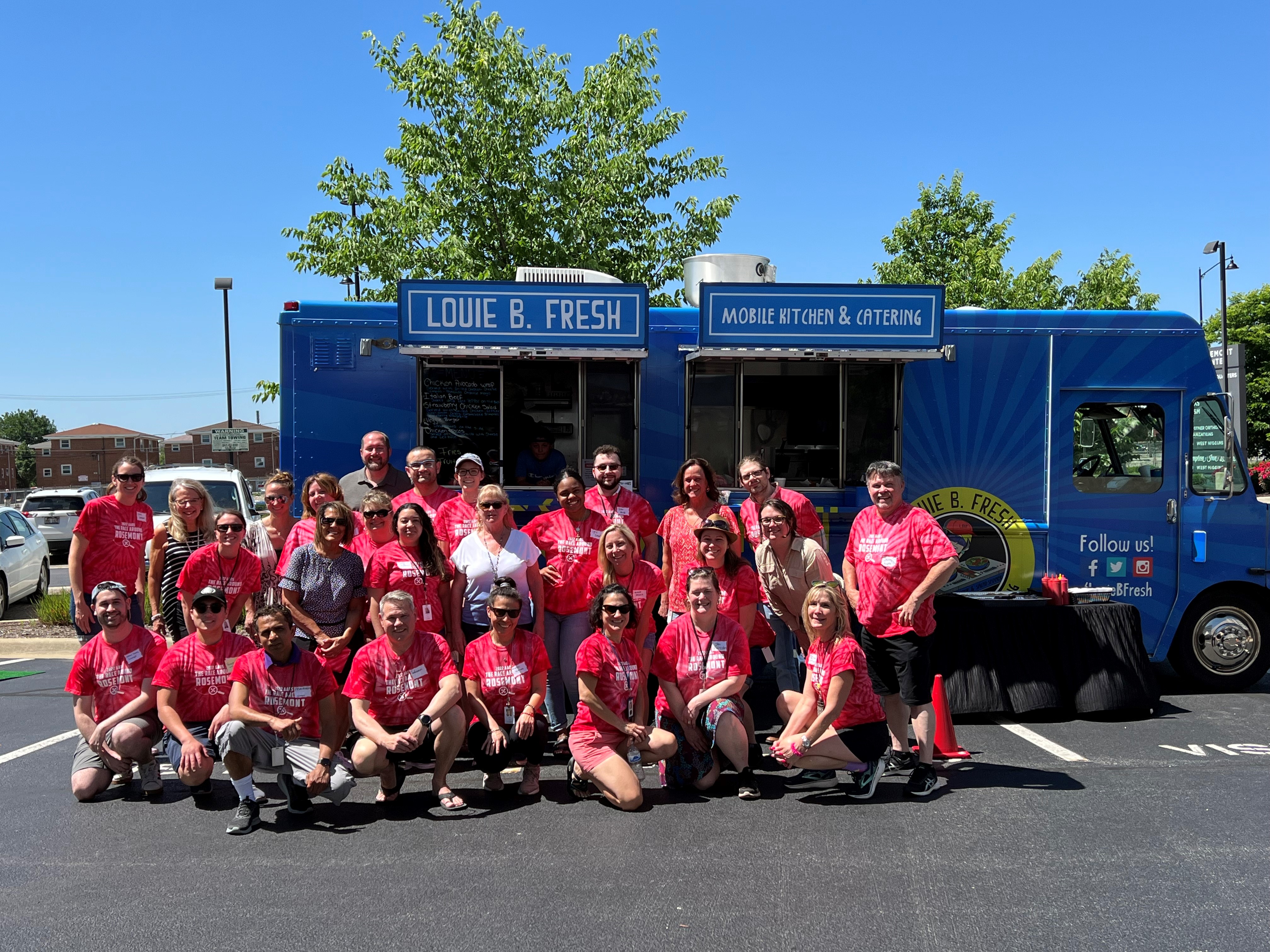 AAOS Staff enjoying a food truck lunch courtesy of Billy Bricks Pizza and Deli Trucks.